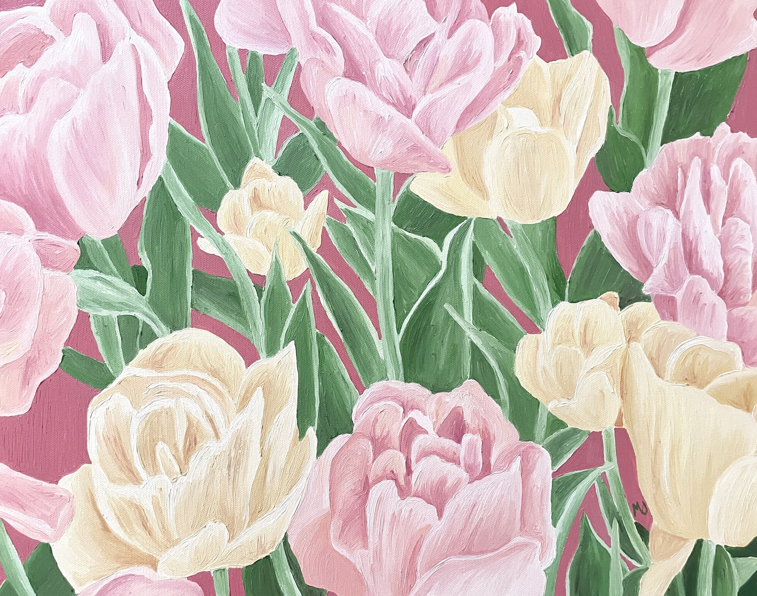 Pastel Tulips, 16x20” oil on canvas, 2025