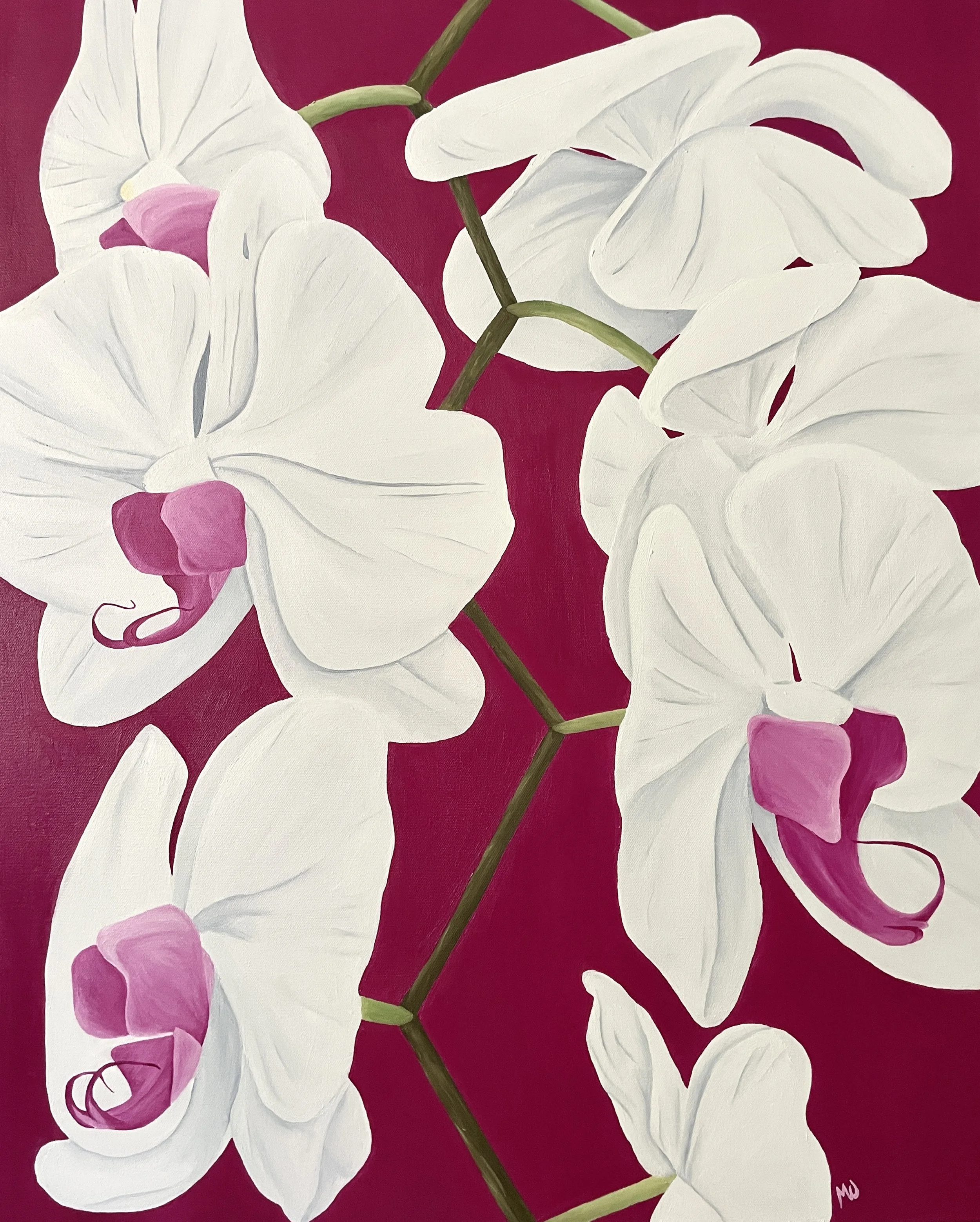 White with Magenta Orchids, 24x30” oil on canvas, 2024